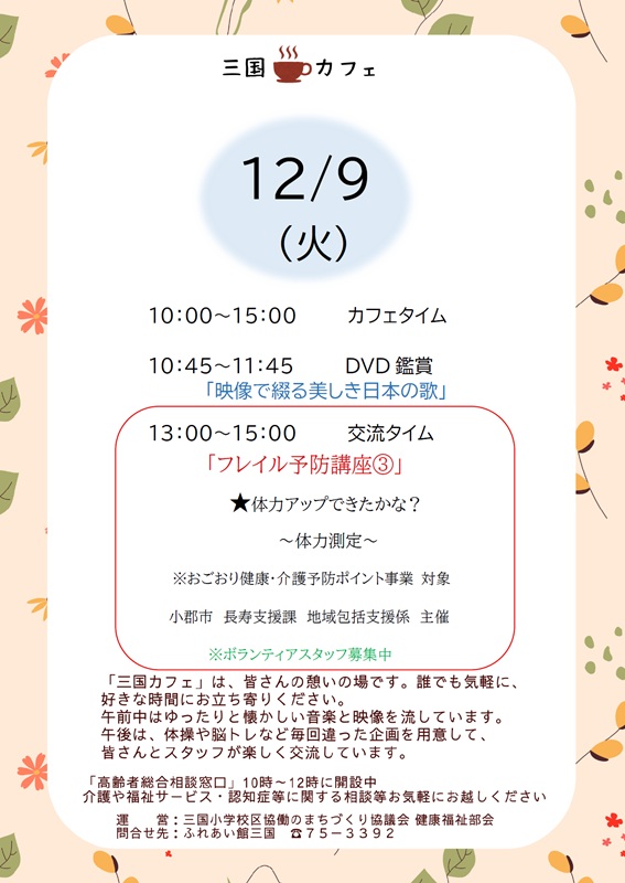 | 運営:三国小学校区協働のまちづくり協議会 健康福祉部会 | |
